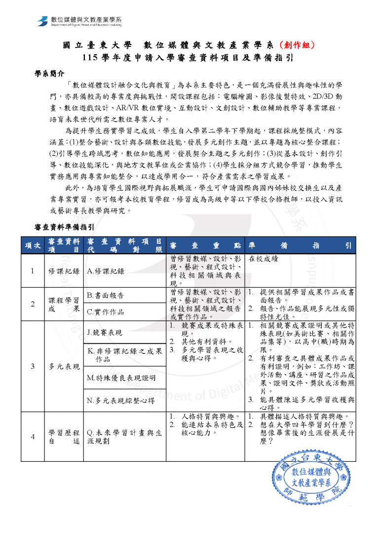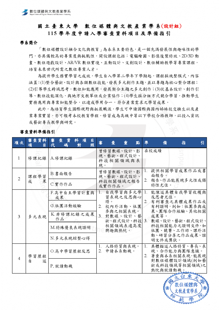 115學年度個人申請審查資料項目及準備指引