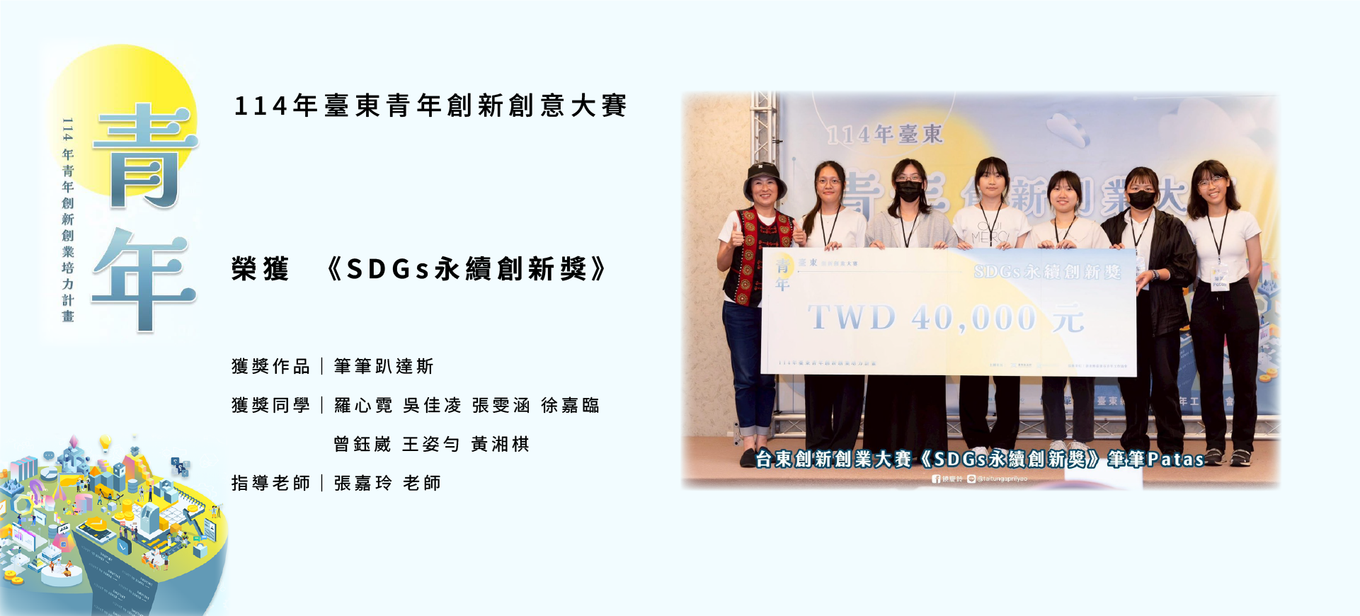 Read More "【競賽得獎】114年臺東青年創新創意大賽 《SDGs永續創新獎》"
